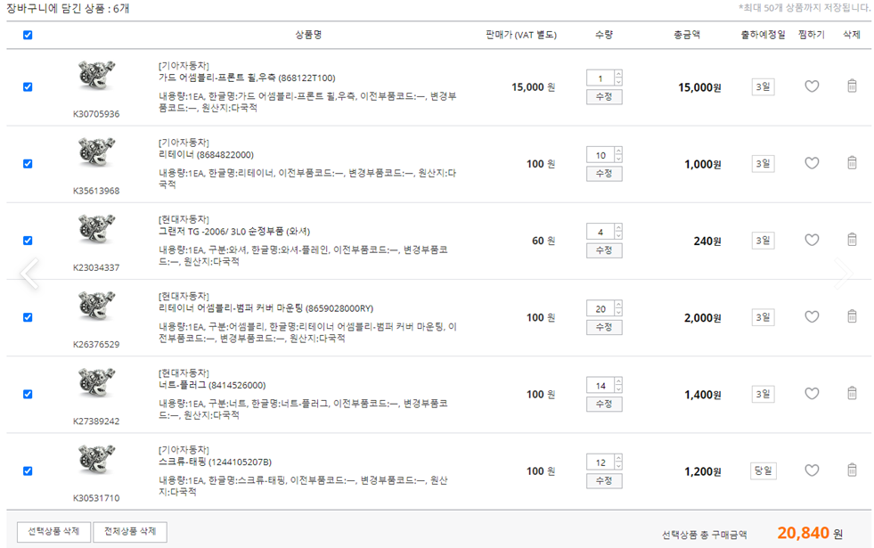 현역 제품이 아니라 이미 세대교체가 된 자동차부품들은 보유재고가 없을 가능성이 높기 때문이다.